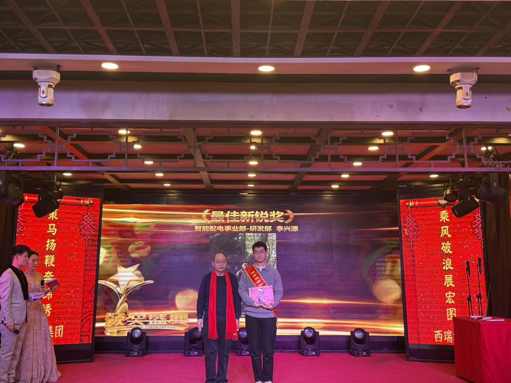 晚宴开始前,公司特别向所有登台献艺的内部参演人员表达了感谢,并为他们颁发了精美的纪念品,感谢他们用才华与热情为年会增添光彩。