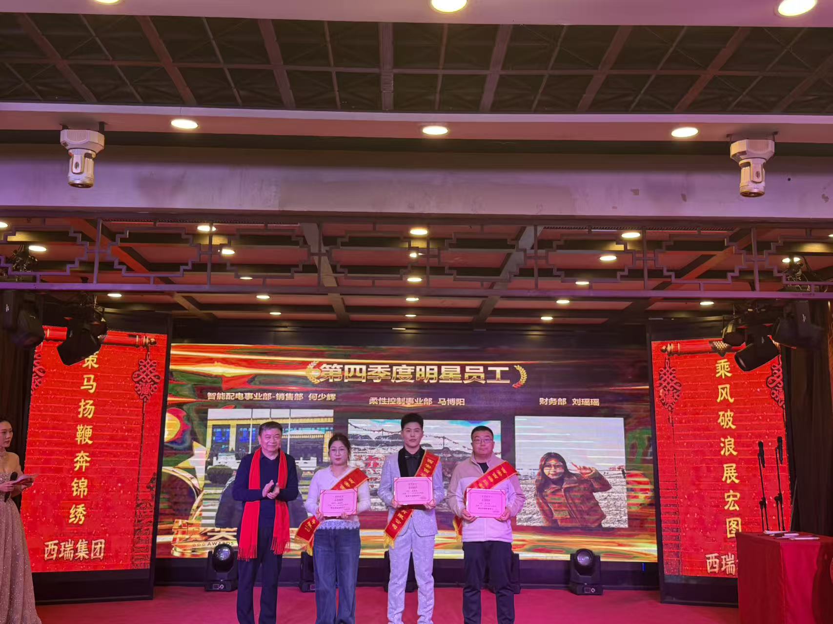 从闪耀在各自岗位上的 “第四季度明星员工”何少辉、马博阳、刘瑶瑶,到初露锋芒、未来可期的 “最佳新锐”李兴源、郭建龙、高浪超;从实现关键技术突破的 “最佳创新奖”得主王宝锋,到扎根一线、默默奉献的 “服务标兵”薛伟强、毛昌清;从匠心守护质量的 “生产标兵”乔丽丽,到高效协同保障的 “最佳助力奖”获得者高梦,再到以业绩说话的 “销售贡献奖”赢家刘晓飞……每一位获奖者都是西瑞奋进征程上的杰出代表,他们用专业、汗水、智慧与担当,在平凡的岗位上创造了不凡的价值,绽放出耀眼的光芒。